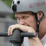 Biff Hutchison of Burley, Idaho, takes a breather during his performance during Pogopalooza, The World Championships of Pogo in Wilkinsburg, Pa., Saturday, July 20, 2019.