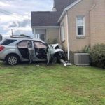 The SUV crashed into a house a short distance away in West Mifflin, according to police. Two men in the SUV were arrested after a short foot chase. Police did not identify the suspects.