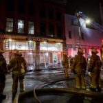 Firefighters battle a fire at Yinzers in the Burgh on Penn Avenue in Pittsburgh’s Strip District on Wednesday, April 22, 2020.