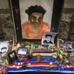 A memorial to Antwon Rose II is seen outside of Allegheny County Courthouse during the third day of the homicide trial of former East Pittsburgh Police officer Michael Rosfeld, Thursday, March 21, 2019. Rosfeld is charged in the fatal shooting of Antwon Rose II, who was unarmed, as he fled a felony traffic stop.