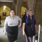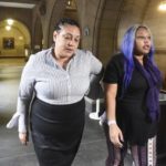 From left, Michelle Kenney, mother of Antwon Rose II, and her daughter Kyra Jamison make their way back to the courtroom at the Allegheny County Courthouse, Thursday, March 21, 2019, Downtown. It’s the 3rd day for the trial of Former East Pittsburgh Officer Michael Rosfeld charged in the fatal shooting of 17-year-old Antwon Rose II. (Pennsylvania NewsMedia Association Pool Photo)