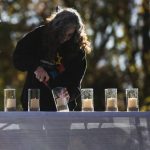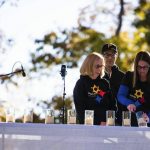 Family members of the deceased lit 11 candles lined up on a stage on Prospect Drive for a commemoration ceremony marking four years since the Tree of Life shootings.