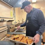 “I’ve been frying for 15 years,” Johnson said Friday at lunchtime while handling fish orders for a packed church hall at Holy Family Parish’s St. Irenaeus in Oakmont.