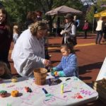 Milah Russel, 5, of Beaver Falls paints pumpkins with her great grandmother, Thereasa Pantaleo of Conway, at Oakmont Chamber of Commerce’s Fall Festival.