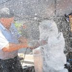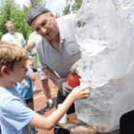 Master ice carver Rich Bubin crafted frozen masterpieces, including a squirrel that poured fruit punch out its mouth. He also sprayed the crowd with ice to cool them off.