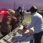 “Normally, we’d have the kids get dressed up in their costumes and we’d do it in the council chambers,” Mayor Harry Schlegel said. “They come in. They get candy and sit there and watch a movie. We can’t do that. There’s a good turnout. There’s three rows (of cars in the park). Better than I’d thought.”
