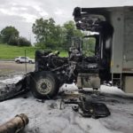A tri-axle landscaping truck carrying mulch caught fire Wednesday afternoon near the Plum and Monroeville border.