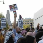 “We’re all here today in solidarity with the Palestinian people,” Jones added. “That is how we get freedom, that is how we get liberation, that is how we get justice and that is how we get peace.”