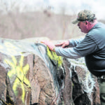 Cleanup started Monday along the Youghiogheny River in Ohiopyle’s Ferncliff Peninsula Natural Area after vandals spray-painted symbols and words on rocks across from the visitors center.