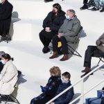 Sanders drew lots of attention on the internet for his attire — hand-knit mittens and what appears to be the same warm coat he wore in his first internet meme — and for his matter-of-fact stance in the audience. During the festivities, he could be seen sitting with his legs and armed crossed, seemingly separated from the rest of the group.