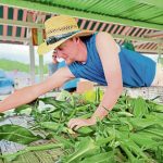Seth Hepler, 23, of Gilpin bags fresh corn July 31 at the Myers Pickle Farm produce stand in Gilpin.