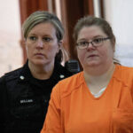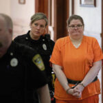 Heather Pressdee is escorted Thursday morning into a courtroom at the Butler County Courthouse where she pleaded guilty to murdering several of her patients.