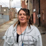 Stephanie Taylor, a recovering addict who now serves as a recovery coach at Lost Dreams Awakening, stands for a portrait in New Kensington’s Ivy Alley.