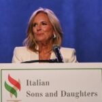 First lady Jill Biden delivers remarks during an Italian Sons and Daughters of America dinner at Rivers Casino in Pittsburgh on Saturday, July 13, 2024. Biden talked about her Italian heritage and the perseverance of Italian Americans during the brief speech.
