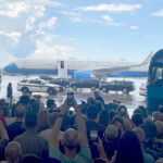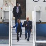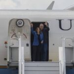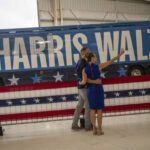 Kamala Harris and Tim Walz’s plane arrived Sunday at a private airport hanger on the edge of Pittsburgh International Airport.