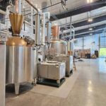 It also has an expansive production facility with two traditional copper pot stills, a 1,000-gallon stripping still, and a 600-gallon spirit still. The colonial-themed tasting room is known as the meetinghouse.