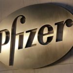 In this Nov. 23, 2015, file photo, the Pfizer logo is displayed at world headquarters in New York. Pfizer is buying Mylan in an all-stock deal and combining the generic pharmaceutical company with its off-patent branded and generic established medicines business.