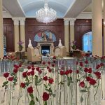 As you make your way up the steps into the spacious resort lobby, you spot 400 vases filled with fresh roses.