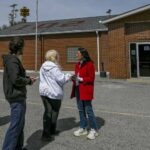 State Rep. Jill Cooper talks with voters as the prepare to vote in Washington Township on Tuesday April 23, 2024.
