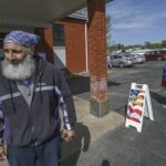 John Hanna of Lower Burrell talks with media after voting at the Church of God onTuesday April 23, 2024.
