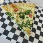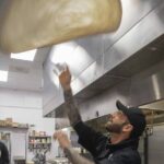 Onder was tossing pizza dough for those slices — such as plain, Margherita, Bruschetta, Florentina, carnivores delight and buffalo chicken. The restaurant sells New York style and Sicilian pies. Toppings can be added to any slice.