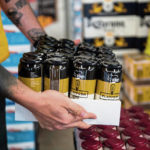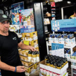 Owner Frank Mesich picks up a four pack of Platform Beer Co.’s Torte, a beer inspired by Prant’s Burnt Almond Torte cake, after receiving his shipment at Pittsburgh Street Beverage in Greensburg, on Thursday, April 18, 2019.