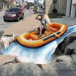 North Huntingdon artist Erik Greenawalt poses on a raft and river he created for a previous Chalk the Block event in Somerset.