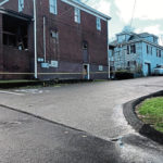 A red and blue tricycle rested on its side in the front yard. In the back, broken first- and second-story windows looked out on a trampoline and swing set. The grandmother’s house, next door to the duplex, had siding and shutters melted off from the fire.