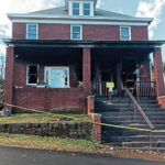 Windows on the first floor were broken, edges darkened by black soot. Caution tape lined the front of the house, with “danger” and “no trespassing” signs posted on the door. A swing and grill sat on the porch, seemingly untouched by the fire.