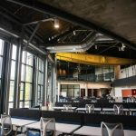 What was once a facility that serviced trains that were used to move steel and steelmaking materials is now a shiny new innovation center with large windows replacing what were once garage doors. There are comfortable work spaces and a second floor that did not exist in the original structure. The upper floor introduced concrete to a building that was of made of brick, steel and wood.