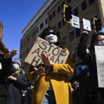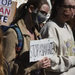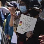 People attend a “Stop Asian Hate” rally in Pittsburgh’s Oakland section on Saturday, March 20, 2021. The rally was held to protest the increase in hate crimes against Asian Americans.