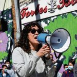 Actress Sandra Oh speaks during a “Stop Asian Hate” rally in Pittsburgh’s Oakland section on Saturday, March 20, 2021. The rally was held to protest the increase in hate crimes against Asian Americans.