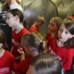 Anna Clute (right) and classmates peek into the milk plant at Brunton Dairy during a tour of the Independence Township farm on Wednesday, May 29, 2019. Kindergarten students from The Goddard School of Cranberry Township were selected by American Dairy Association North East from more than 250 schools for an on-the-farm tour.