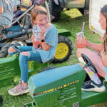 Sewickley Township 10-year-olds Paislee Lash, left, and Laina Janzef relax before taking part in the pedal tractor pull competition on Thursday, July 18, 2024 at the Sewickley Township Community Fair.