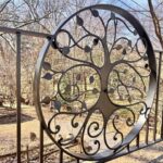 Her son, nationally recognized metal smith artist Colin Carrier, created a custom metal fence complete with engravings that include “the butler did it” and park donor names.