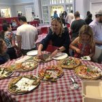 Photos and short videos of students working with pizza makers were shown on a big screen accompanied by the Dean Martin classics “Mambo Italiano” and “That’s Amore.”