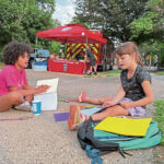 Pippa Young and Amara Kanick, both 8 and from Sewickley, were among the elementary students who received a backpack. They promptly opened up the bags and began drawing on their new notebooks less than 100 feet away from the volunteer fire company’s booth.