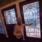 The stained glass at the main entrance was restored and reinstalled last month by Hunt Glass.