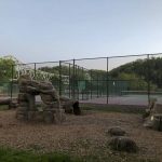 A second option would make one full-size tennis court, a second court that could be used for tennis or pickleball and a slight expansion of the basketball area into a half-court. The second option does not involve moving playground equipment.
