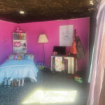 A simulated bedroom used for the test burn included many basic furniture and clothing items typically found in a young person’s bedroom. Bookshelves and a bed complete with blankets, pillows and sheets were neatly placed in the room. Clothes, shoes and a pair of rubber boots sat beside the bed.
