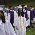 Graduating seniors find their seats at the start of Baldwin High School’s graduation ceremony.