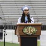 Distinguished graduate Tulasha Neopaney offers remarks during Baldwin High School’s graduation ceremony.