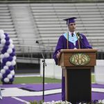 Connor Woods, student school board representative, offers remarks during Baldwin High School’s graduation ceremony.