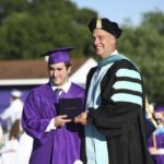 Graduating senior Shayne Henchell receives his diploma during one of three commencement ceremonies at Baldwin High School on Wednesday, July 1, 2020.
