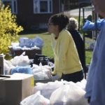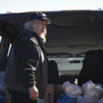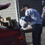 South Hills Interfaith Movement volunteer Dan Zearley loads items into the bed of a truck as he works the organization’s drive-thru food pantry.