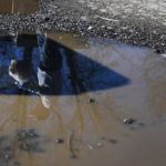 South Hills Interfaith Movement volunteer Dan Zearley is reflected in a puddle.