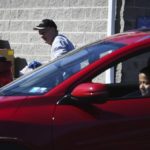 Client John Cochin waits for items at the South Hills Interfaith Movement’s drive-thru food pantry in Bethel Park on Thursday, March 26, 2020. The food pantry, which is open twice each week, was moved outdoors due to the covid-19 outbreak. Nearby Bethel Bakery donated nearly 200 loaves of bread to include in today’s offering.