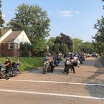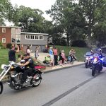 Police and motorcycle groups gear up for a parade during Pleasant Hills’ National Night Out celebration.