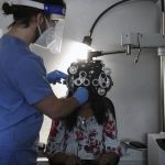 The mobile eye clinic provides free eye exams and free glasses to children who may otherwise not have access.
