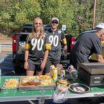Lauren Barnes stood behind a folding table decorated like a football field and lined with tailgating snacks. Her parents are season-ticket holders, so the group knows “all the tailgating tricks,” Barnes said.